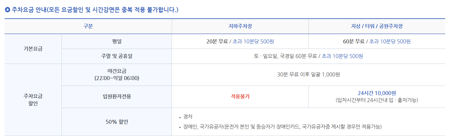 - ✅ 외래 환자: 진료 시 최대 4시간 무료 (주차확인증 필수)